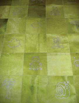 Teppiche Fashion Print 6-52, Tibetlamm weiß, Dinosauro Chartreuse, ZK silber, Ziege natur