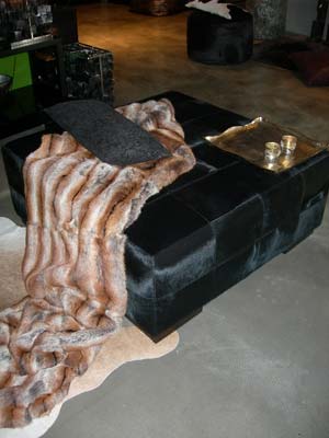 Pouff, 1,00 x 1,00 x 0,40 m, Kuhfell schwarz Pouff, 0,75 x 0,75 x 0,30 m, Kuhfell schwarz Fellplaid Neck 6, 1,40 x 2,00 m