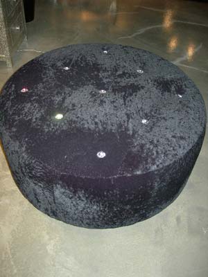 Pouff mit Swarowski schwarz/Astragan mit Silberfüßen 70 x 30 cm